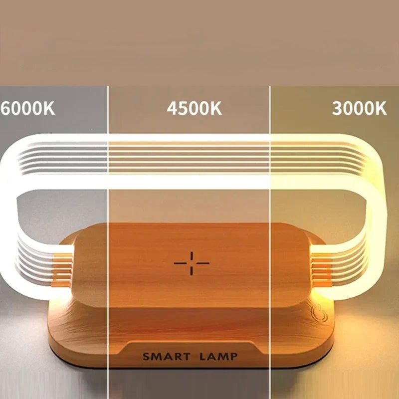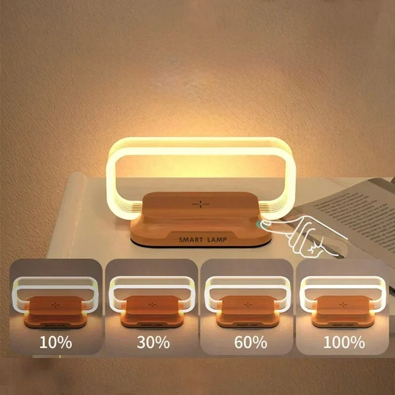 🔌 Lampada da Tavolo LED con Caricatore Wireless – Luce Notturna, Supporto Smartphone e Stazione di Ricarica Veloce